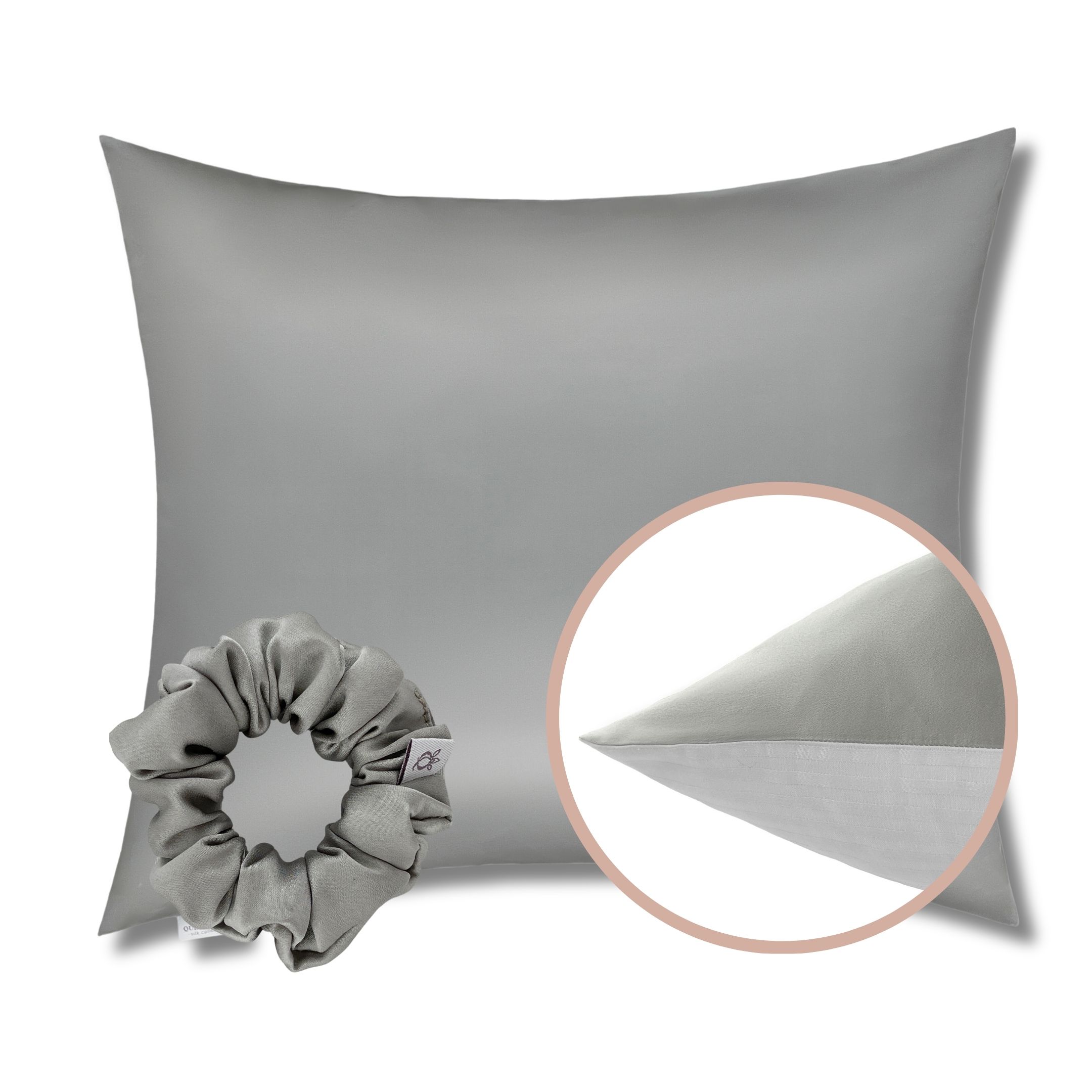 Jedwabna poszewka Qrown 40×60 cm z jedwabną gumką do włosów – luksusowy naturalny jedwab 22 momme.