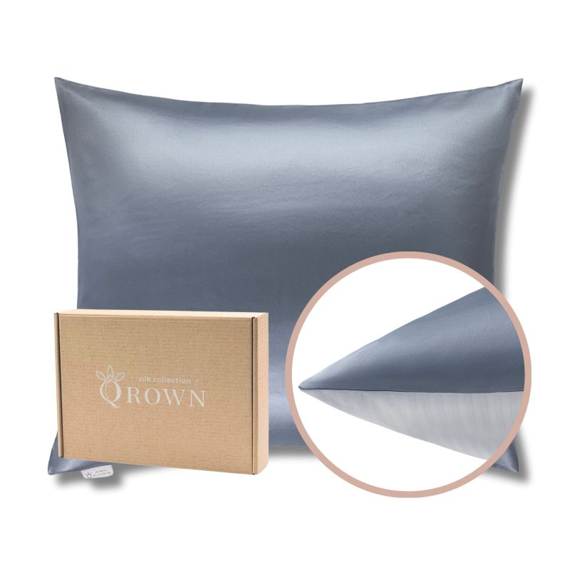 Outlet: Poszewka Jedwabna 50x70cm z Bawełną Szaroniebieska